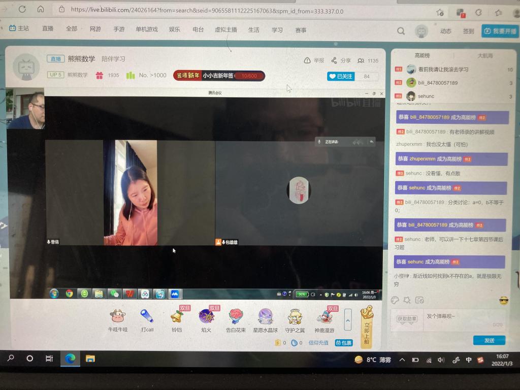 12月24日以来,数学分析教学团队通过微信群和腾讯会议积极讨论数学分析学习难点、线上直播内容选题和分工等问题,讨论制定了线上直播陪伴学习的活动方案。