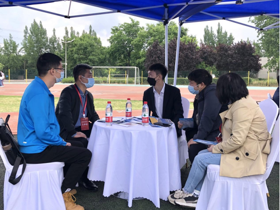 5月13日,best365官方网站2022届毕业生春季就业双向选择洽谈会在北校区朝晖运动场举行,公司积极组织2022届毕业生参加招聘会。公司党委书记闫永刚、党委副书记屈颖、信息与计算科学系副主任程晓晗、工程力学系教师张博及毕业班辅导员前往招聘现场,与招聘单位接洽交流,推荐公司优秀毕业生。