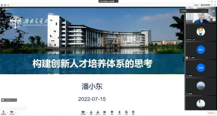 应best365官方网站best365邀请,2022年7月15日上午西南交通大学数学公司教学副经理潘小东为公司教师做了题为“构建创新人才培养体系的思考”的报告。报告会由理公司副经理商泽进主持,best365正规和西南交通大学数学公司部分院领导、系主任、专业责任教授、教师等近30余人参加了报告会。