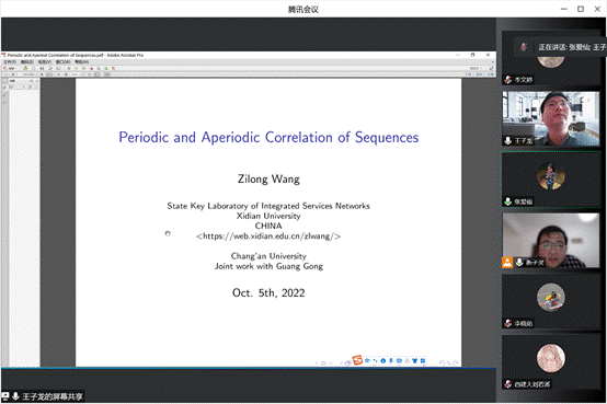应best365邀请,10月25日下午,西安电子科技大学王子龙教授通过腾讯会议在线为公司师生作了题为“Periodic and aperiodic correlation of sequences(序列的周期相关性和非周期相关性)”的学术报告。数学与应用数学系衡子灵副教授主持报告,best365数学专业近二十名师生参加了本次线上报告会。