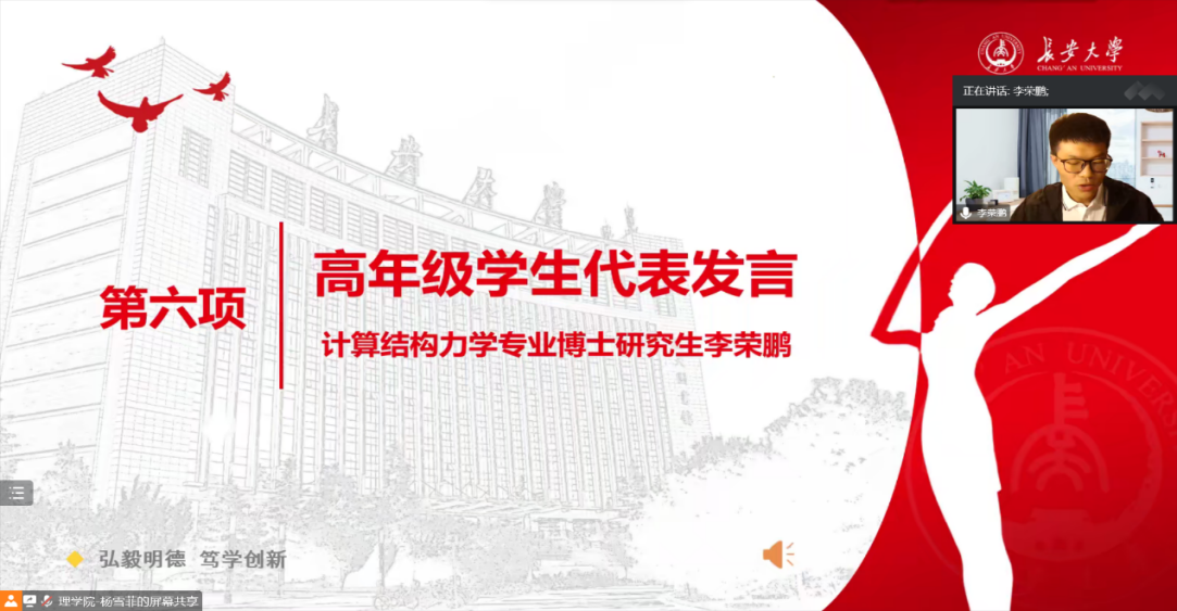 2022级研究生新生代表耿鑫、本科新生代表樊炬鸿先后发言,表示会牢记“弘毅明德、笃学创新”的校训,发奋图强,不辜负老师和家长的期望,以饱满的热情、昂扬的斗志投入到新学期的科研、学习中。高年级员工代表李荣鹏向新同学介绍了宝贵的学习和生活经验,鼓励同学们勇于追逐梦想,脚踏实地走好每一步路。