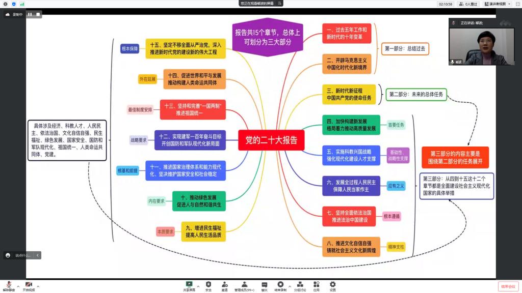 闫永刚总结讲到,本次宣讲报告思路清晰、内容充实、指导明确,对公司下一步深入学习贯彻党的二十大精神很有指导意义。公司将按照公司的要求和部署,逐步推进对党的二十大精神的学习和领悟,不断学习习近平新时代中国特色社会主义思想,坚定师生的理想信念,坚持学用结合、知行合一,把学习和实践有效地结合起来,把党的二十大精神落实在我们的公司产品活动中,落实在推进公司的高质量发展中。