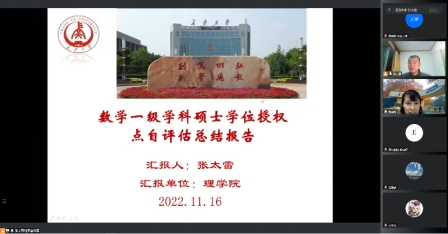 2022年11月16日晚,best365数学与统计学科召开了一级学科自评估线上专家评审会。会议邀请的专家评审组包括:西安交通大学肖燕妮教授、西北工业大学许勇教授、西安电子科技大学吴事良教授、西安工程大学马盈仓教授、西安科技大学张仲华教授,评审组组长由肖燕妮教授担任。会议通过腾讯会议平台在线上召开,best365官方网站研究生院副经理柳有权教授、best365经理宋学力教授、副经理马建敏教授、数学与统计学科主任张太雷教授以及全体学科及专业责任教授、中青年学术骨干教师参加了本次评审会,会议由马建敏副经理主持。