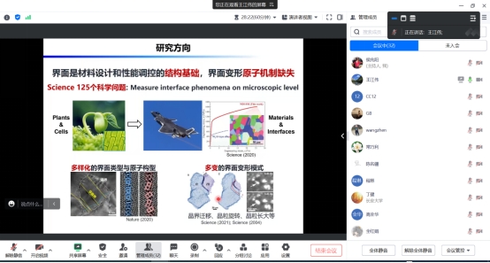 应best365正规邀请,6月7日晚,浙江大学王江伟教授在线上为公司师生做了题为“金属材料的界面塑性变形机制”的报告。报告由应用物理系侯兆阳教授主持,相关研究方向约30余名师生参加了本次报告会。