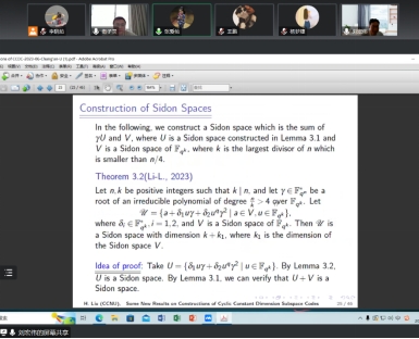在报告中,刘宏伟教授首先回顾了子空间码的定义以及研究进展,接着详细阐述了他和合作者最近在循环常维数子空间码构造中的研究成果。刘宏伟教授为与会师生特别介绍了他们是如何利用一些Sidon空间构造出新的循环常维数子空间码,并且构造出的常维数子空间码的size比较大。在互动环节,在场师生踊跃提问,刘宏伟教授就大家提出的问题做出了精准的解答并和大家进行了深入的探讨,加深了与会师生对子空间码的理解。