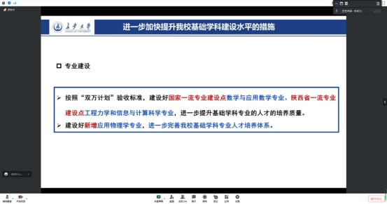 宋学力从参加主题教育的学习情况引入,与大家一起分享了学习的认识和感悟,重点从“完善基础学科专业体系”“进一步加强党的建设,为高水平基础团队建设提供坚强的政治保障和思想引领”“创新人才培养模式,优化本硕博贯通培养体系,进一步提升基础学科人才培养质量”“加强团队队伍建设”“进行有组织的教学研究,不断提升基础学科教师的教学研究能力”“加大基础理论及其交叉应用研究的组织力度,进一步提高原始创新能力和服务社会的能力”“加强基础理论研究平台和交叉学科科研平台建设,为基础团队建设提供高水平平台支撑”“加强与国际知名高校的交流与合作,进一步提升国际合作与交流能力”等八个方面提出了进一步加快提升公司基础团队建设水平的内容和措施。最后指出,希望全院师生能够以学习贯彻习近平新时代中国特色社会主义思想主题教育为契机,紧紧围绕主题教育的目标要求,以学铸魂、以学增智、以学正风、以学促干,把学习与履行工作职责结合起来,与公司年度党政工作要点结合起来,与推进绩效考核、博士点申报等各项重点任务结合起来,坚持学思用贯通、知信行统一,把习近平新时代中国特色社会主义思想转化为坚定理想、锤炼党性和指导实践、推动工作的强大力量,以高水平团队建设引领公司高质量发展,为早日实现把公司建设成“教学成果突出、专业和团队建设水平较高、在行业高校中有一定影响力的best365”的奋斗目标不懈努力。
