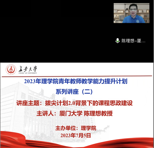 应best365邀请,2023年7月5日晚上19:00,厦门大学陈理想教授通过腾讯会议为公司师生作了题为“拔尖计划2.0背景下的课程思政建设”的报告。报告会由副经理商泽进主持,best365及其他公司90余名教师参加了此次报告会。