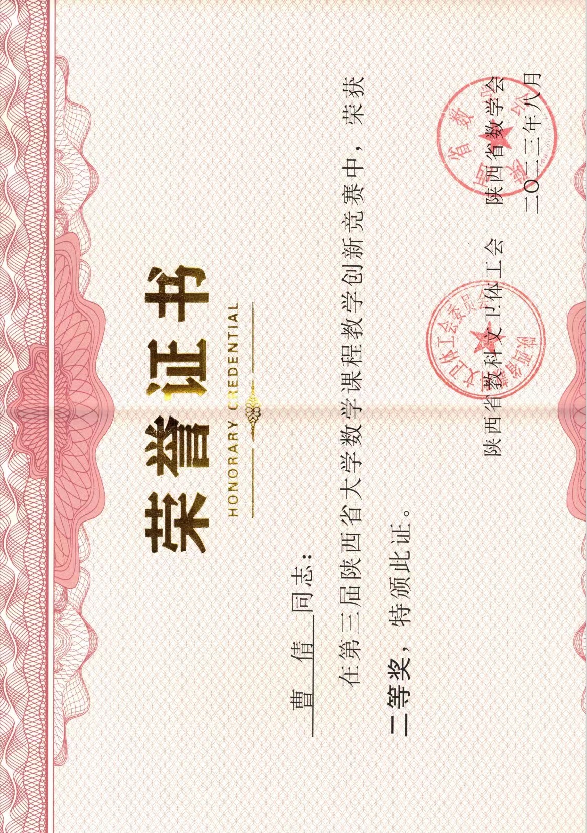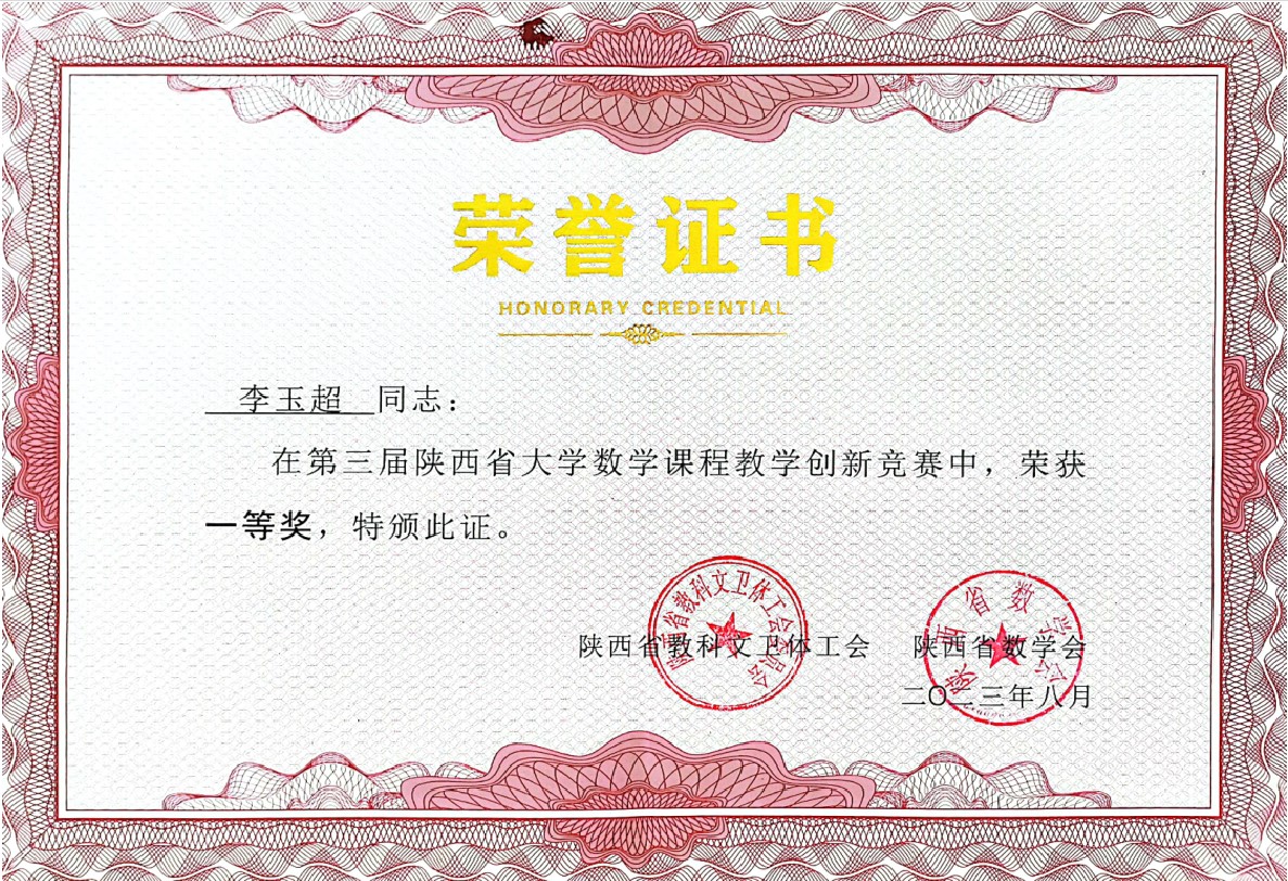 8月19日,第三届陕西省大学数学课程教学创新竞赛活动颁奖仪式暨第四届陕西高校大学数学课程建设与教学改革研讨会在榆林公司举行。竞赛分为材料评审和视频评审两个阶段,经过激烈的角逐,公司数学与统计教学发展中心选派的三位教师均获奖,其中李玉超老师获得一等奖,曹倩、刘佳两位老师分别获得二等奖。