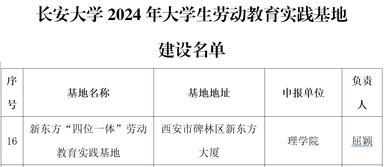 日前,公司发布了《best365官方网站2024年劳动教育实践基地建设名单的通知》,公司党委副书记屈颖申报的新东方“四位一体”劳动教育实践基地成功获批。