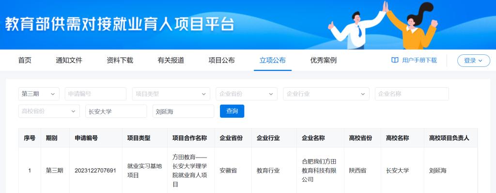 近日,全国普通高等公司就业创业指导委员会、教育部高校员工司(高校毕业生就业服务司)发布了《关于公布教育部第三期供需对接就业育人项目立项名单的通知》,经前期高校与用人单位联合申报,专家审核,确定了第三期供需对接就业育人项目名单,公司申报的就业实习基地项目获批立项。