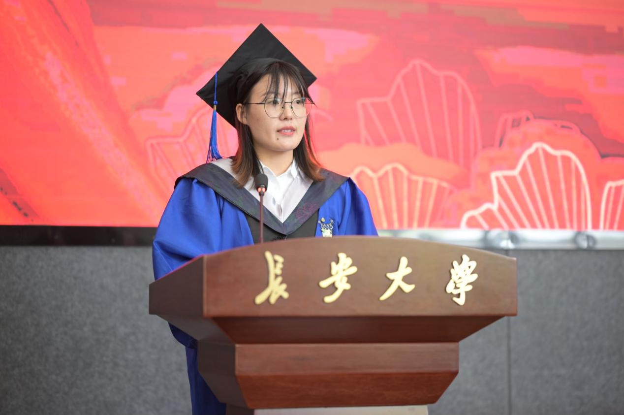 在校生代表、2022级工程力学专业本科生卫思怡同学代表所有在校生向即将毕业的学长学姐们送上了最真挚的祝福,并表示将以他们为榜样,努力学习,为公司争光。