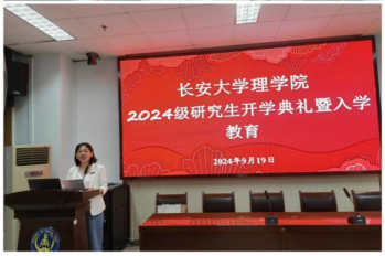 博士生导师郑素佩教授作为教师代表发言。她向2024级研究生新生的到来表示欢迎和祝贺,并结合自身科研实践经历,针对“如何走好知识探索、科技创新的研习之路”分享三点心得感悟:一是要树立明确的目标,一个清晰的目标是研究生涯的航标,能够指引同学们在学术探索的道路上坚定前行;二是要刻苦钻研,善于思考总结。只有通过不懈地努力和深入探索,才能在专业领域取得实质性的突破;三是要珍惜团队协作。在团结协作的环境中,个人才能够获得更多的成长机会,团队也能共同攻克科研难题。最后,她鼓励研究生坚守初心、逐梦前行,用拼搏奋斗书写人生新的篇章。