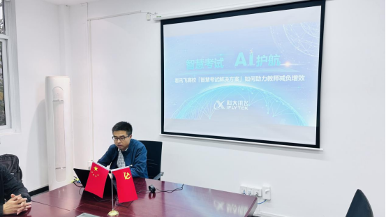 陈磊首先从政策背景、讯飞纸笔考试解决方案以及科大讯飞公司业务三个方面向老师们做了题为《智慧考试 AI护航》的培训报告。他指出,随着教育信息化的不断推进,国家大力倡导在教育领域运用现代信息技术提高教学质量和管理水平,教学档案电子化管理在信息存储、检索、资源共享、数据深度分析等方面相比传统方式有巨大优势,有助于实现教育资源的高效整合与利用,是推动教育现代化的重要举措。随后,陈磊详细介绍了科大讯飞纸笔考试解决方案,结合公司教学档案管理要求从出题、印刷、监考、批改试卷、试卷分析、考试报告到归档整个流程向参加老师进行了培训。