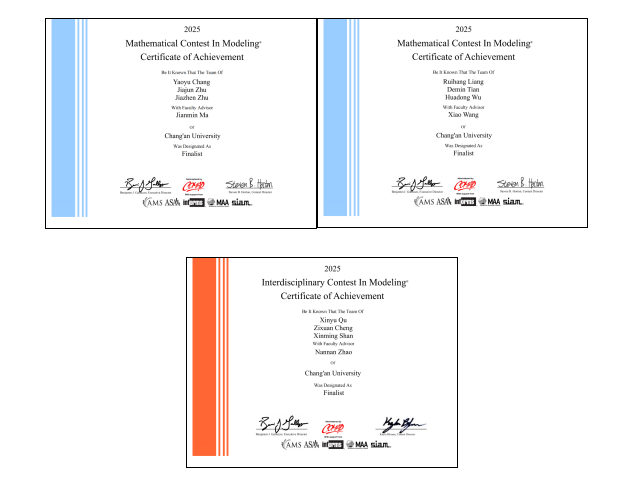 长安大学2025年美国老员工数学建模竞赛参赛队获奖名单 |