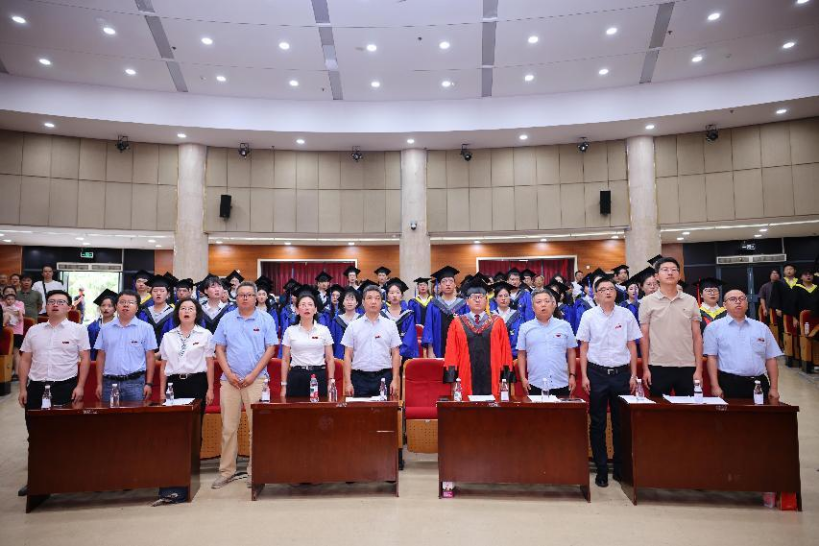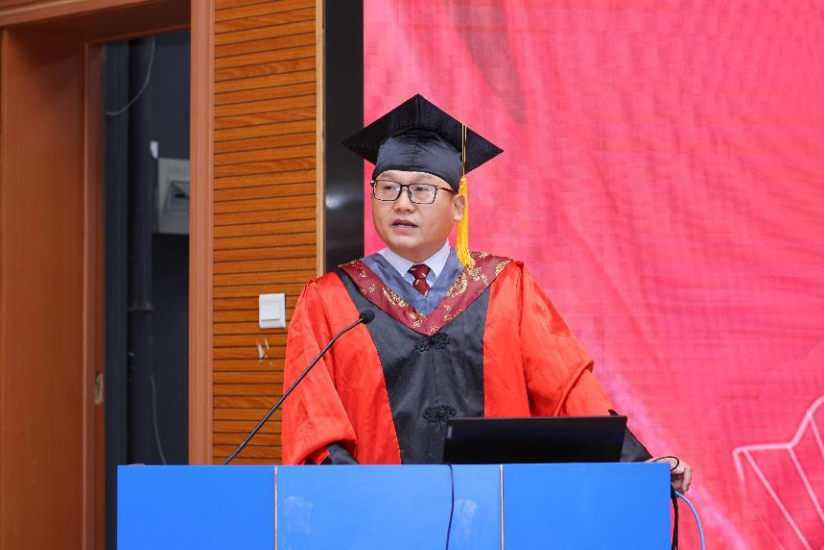 在雄壮的国歌声中,毕业典礼正式开始。公司学位评定分委员会主席、经理宋学力教授致辞,向全体毕业生致以最热烈的祝贺和最美好的祝福,向所有帮助毕业生成长成才的老师、家长及朋友致以最衷心的感谢。他充分肯定了2025届员工在思想、学习、生活等方面的成长,与同学们分享了近年来公司在人才培养、团队建设和科研平台建设等方面取得的成绩。并提出三点希望与大家共勉:一是坚定理想信念,以专业技能和综合素养实现人生价值;二是心怀感恩和敬畏之心,在生活和工作中勇于担当;三是树立持续学习理念,争取在社会大学中做一个优秀的员工。最后他祝福同学们健康快乐,成就更好的自己。