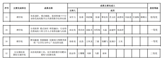 拓宏亮副教授主持的 “分类培养 模式协同 团队融合:行业特色型高校工程力学人才培养创新与实践”、徐春龙教授主持的 “理实融通 资源赋能 创新助力物理类课程‘以员工为中心’的改革实践” 两个项目荣获一等奖,段金伟副教授主持的“从传统到新工科:化学课程教学的靶向重构与创新实践”项目,荣获二等奖。