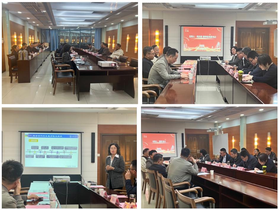 会议紧密围绕“数学团队建设”这一核心议题,凝聚共识,共商发展。best365经理宋学力教授对各位专家长期以来给予公司数学学科发展的关注与支持表示衷心的感谢,简要介绍了数学学科的基本情况。数学学科主任郑素佩教授就数学学科现状进行了汇报,全面梳理了团队队伍、人才培养、条件保障等方面的建设成效,深刻剖析了现存问题,并明确了未来发展规划。