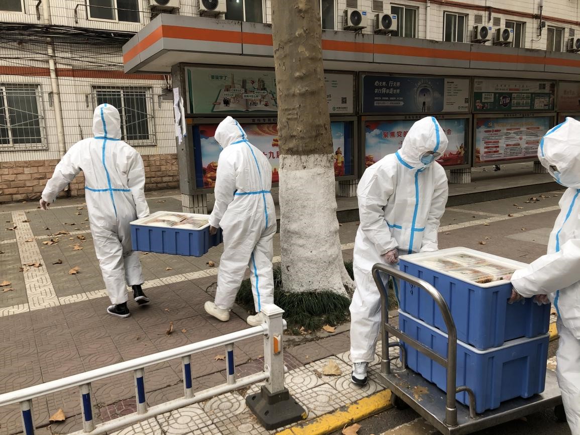 为了更好地给居寝隔离的员工送去温暖,公司志愿者服务队的成员们每天早上八点,准时到餐厅集合,然后清点餐数,搬运上推车开始送餐,午餐和晚餐同样如此。有时候手推车不够,大家就自行抬回宿舍,所有志愿者化身送餐员,自觉肩负起为隔离员工送餐的任务,辛勤往返与食堂和宿舍之间,让隔离的员工们都吃上了热腾腾的饭菜。