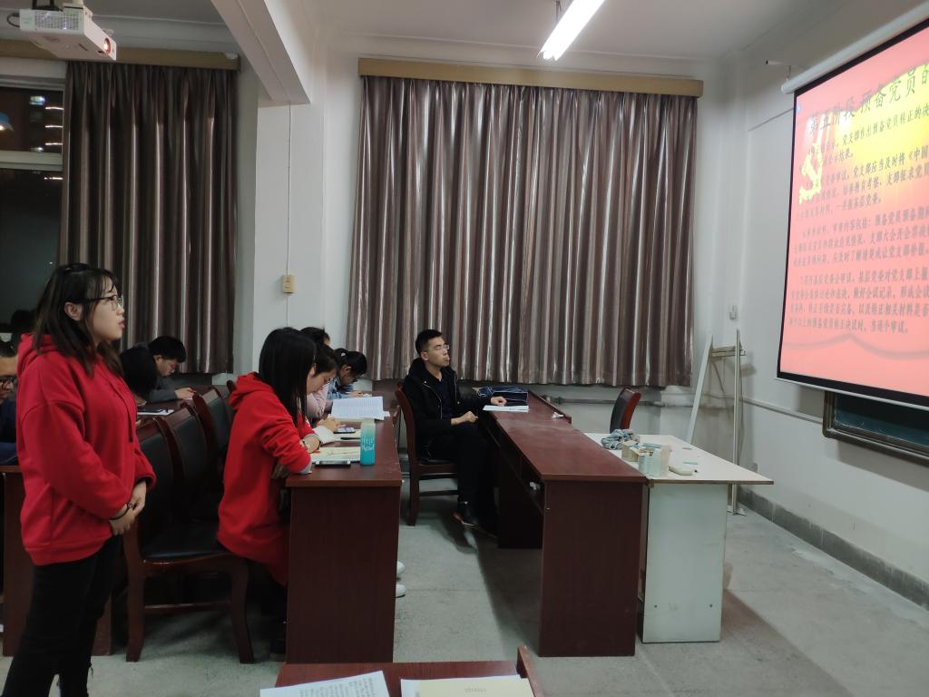 2019年10月29日晚,公司研究生党支部全体党员及发展对象在基础楼317自习室集体学习《中共best365官方网站委员会发展党员工作规程》和“时代楷模——陈立群”的事迹,会议由李楚婷同志主持。