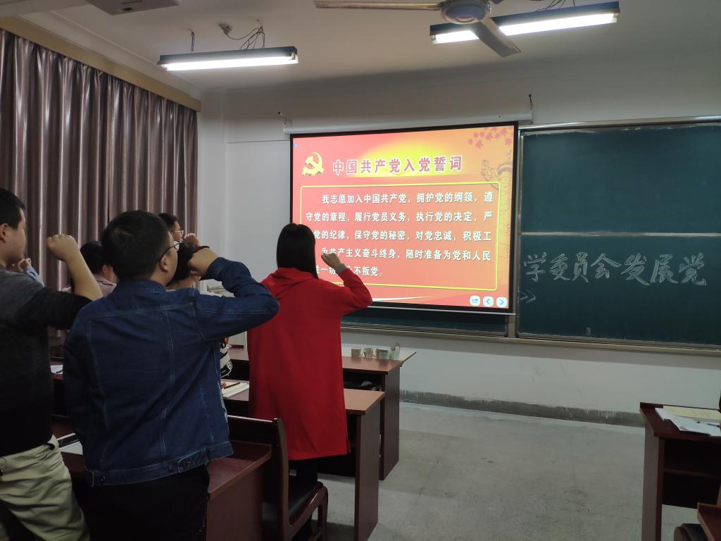 中国共产党党员的发展有着严格的流程和规范,这种规章制度确保了发展的每位党员在组织和思想上都能入党,使得中国共产党的组织保持长久的凝聚力和战斗力。会议开始,李楚婷同志先播放一段简洁的入党流程动画,动画介绍了从递交入党申请书到成为正式党员所有阶段的工作要求。随后,全体人员集体学习了《中共best365官方网站委员会发展党员工作规程》,党支部书记对每一阶段的发展党员工作进行了详细地介绍,学习完毕后,全体党员起立,重温了入党誓词。