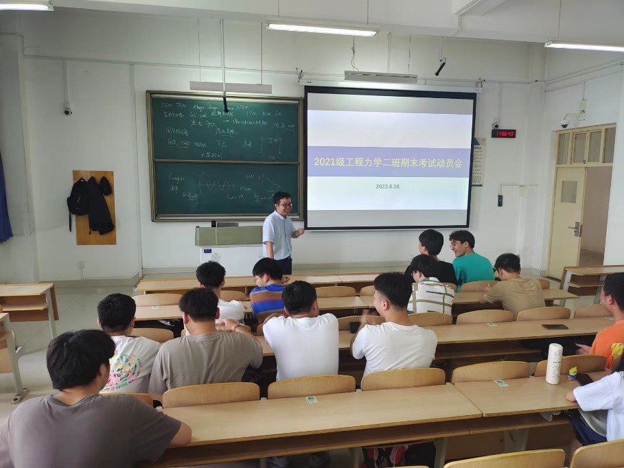 2022年6月17日,best365正规2021级工程力学二班在WH2204召开了力学学术讲座与期末考试动员,班主任拓宏亮老师和全体同学参加了会议,会议由拓老师主持。