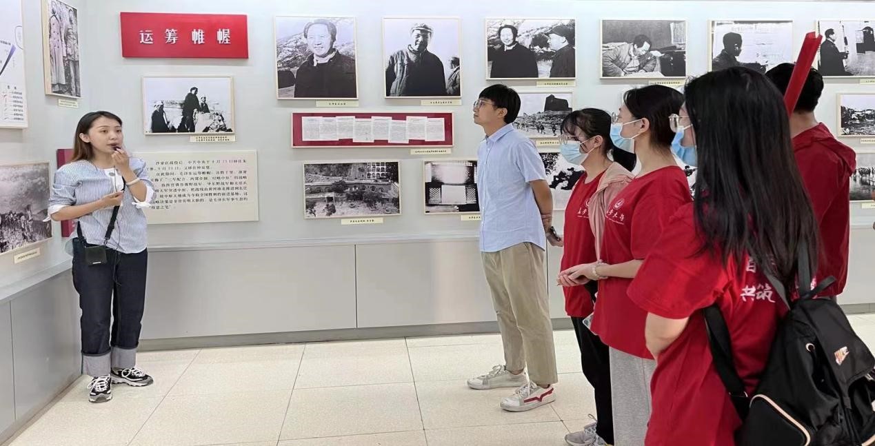 接下来,实践队来到近现代革命史纪念馆。馆内展示了一幅幅珍贵的历史图照,从“扭转乾坤”、“运筹帷幄”、“鱼水情深”和“走向胜利”四部分充分展现了党中央转战陕北的革命历史。