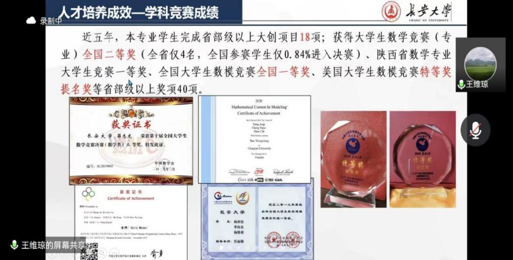 王维琼教授介绍了专业课程体系,并向同学们展示了近五年员工在学科竞赛方面的成绩,鼓励大家积极参与各项赛事,开拓数学思维,从中获取知识和经验。最后,介绍了数学专业现状及未来的发展方向,希望同学们认真学习,不负大学时光。