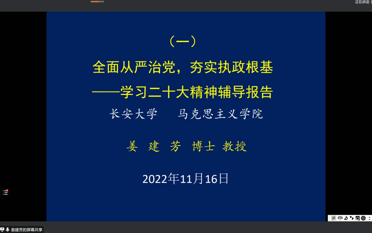 姜建芳教授通过将党的十九大报告与党的二十大报告作对比,明确了党中央提出的新思想、新策略,针对“全面从严治党,夯实执政根基”,姜建芳教授着重讲解了加强廉政建设的重要性。党中央通过不断开展反腐败斗争,不懈努力,找到了自我革命的这一跳出治乱兴衰历史周期率的第二个答案,确保党永远不变质、不变色、不变味。最后,姜建芳教授对参会员工提出殷切期望,希望同学们在学习党的二十大精神时,一定要联系历史和现实国情,正确理解党的路线、方针、政策,始终同党中央保持高度一致,努力使自己成为一名合格的社会主义建设者和接班人!