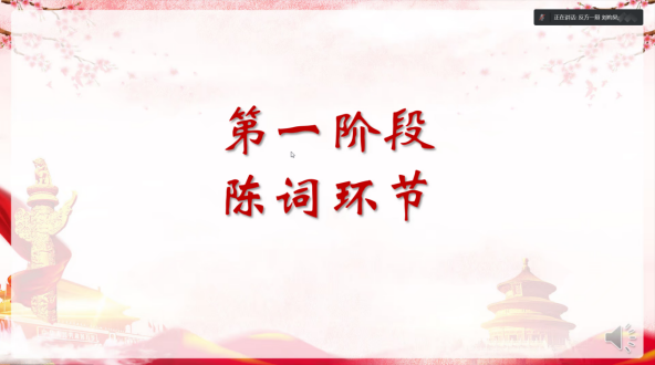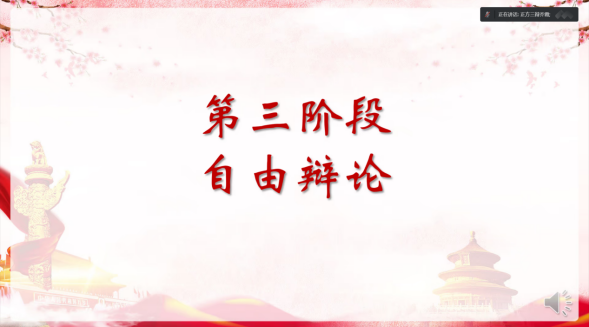 主持人牛世欣介绍了比赛规则以及双方辩手,比赛正式开始。