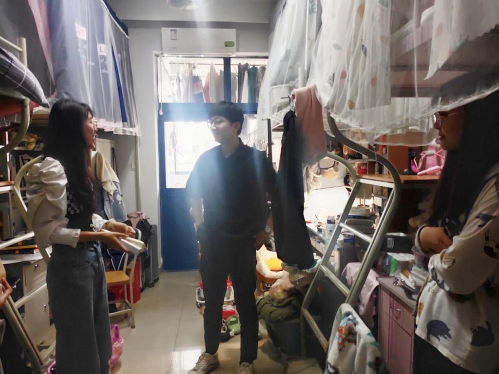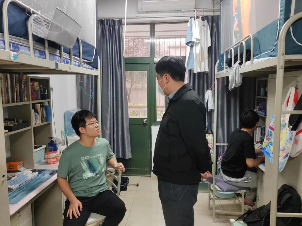 辅导员刘延海和杨雪菲重点检查了宿舍的卫生环境、安全隐患和清洁通风等情况,叮嘱同学们离开宿舍前注意断水断电,做到宿舍安全不留死角。对于劳动节小长假没有回家的同学们,老师们也围绕假期生活、学习等问题对大家进行了关切的问候,嘱咐宿舍成员之间友爱互助,营造良好宿舍氛围。