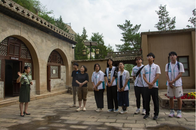 神泉堡是中共中央转战陕北的纪念地,在讲解员的带领下,实践队伍走进神泉堡革命纪念馆。窑洞中,毛泽东、周恩来等老一辈共产党人曾经用过的方桌、木椅、砚台等整齐地摆放着。馆内展示着大量的革命文物、历史照片,从“扭转乾坤”、“运筹帷幄”、“鱼水情深”、“走向胜利”四部分充分展现了党中央转战陕北的革命历史。看着馆里一张张图片、一件件文物,使队员们真切地感受到老一辈革命家艰苦朴素、勇往直前、团结奋进的精神风貌。