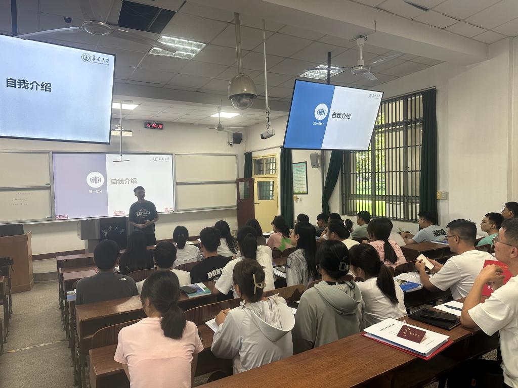 在自我介绍环节中,各位同学依次介绍了自己的个人情况与研究兴趣,通过轻松诙谐的交流建立起彼此间初步了解。2023级优秀博士研究生李克凡同学向大家分享了自己研究生期间的学习与科研的经验,他建议同学们秉持严肃与快乐的态度度过自己的研究生生活,明确目标的同时要高度执行。