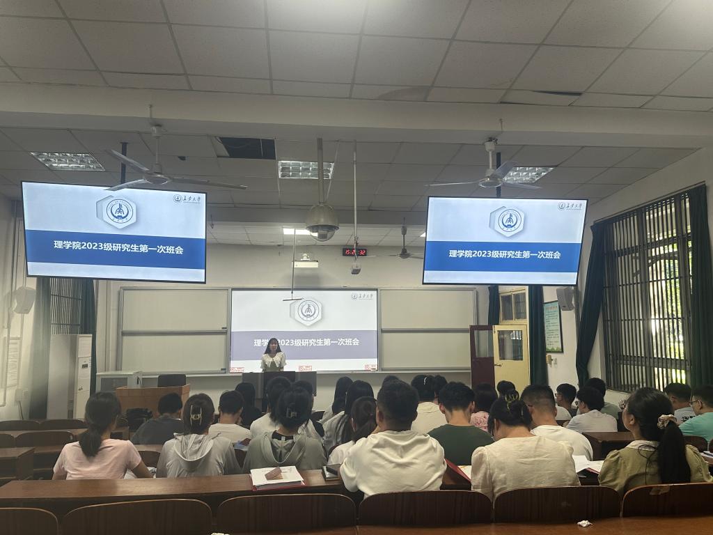 此次班会是2023级研究生班的首次见面会和学习生涯的动员会,既增加了师生同学间交流,也增进了新同学间的同学情谊。班会结束之后,辅导员周小娟与2023级全体研究生新生合照留念。