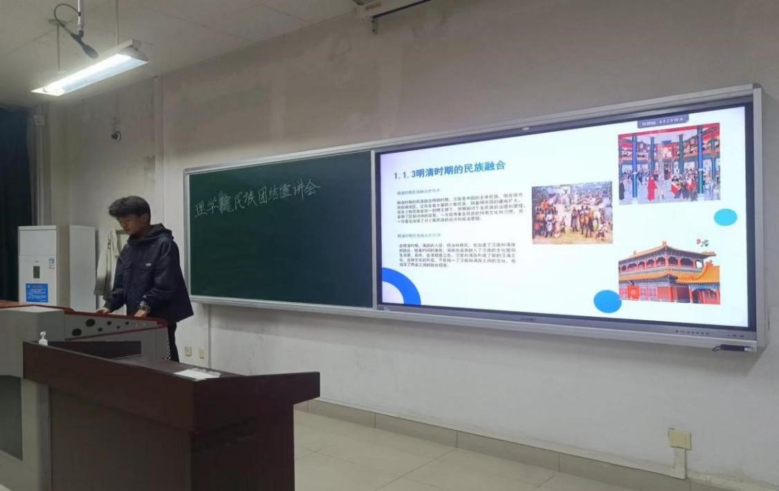 李秉晟首先讲解了民族团结在促进国家繁荣稳定、持续发展以及各地区经济增长中的关键作用。并通过PPT展示,重点让同学们全面地了解了我国多种民族文化,从而增强对中华民族共同体的认同感和自豪感。