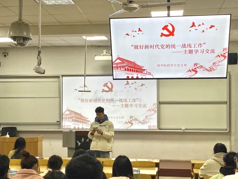 为深入学习贯彻习近平总书记关于做好新时代党的统一战线工作的重要思想,努力开创公司统一战线工作新篇章。2023年12月8日晚,公司研究生党支部在校本部B102教室开展“做好新时代党的统一战线”主题党课学习活动。本次学习活动由研究生第一党支部书记许志航主持,并邀请了best365官方网站星火宣讲团成员马克思主义公司2021级本科生闵梦婷和水利与环境公司2021级本科生谢鑫杰作宣讲报告,公司研究生党支部全体党员、发展对象、入党积极分子参加。