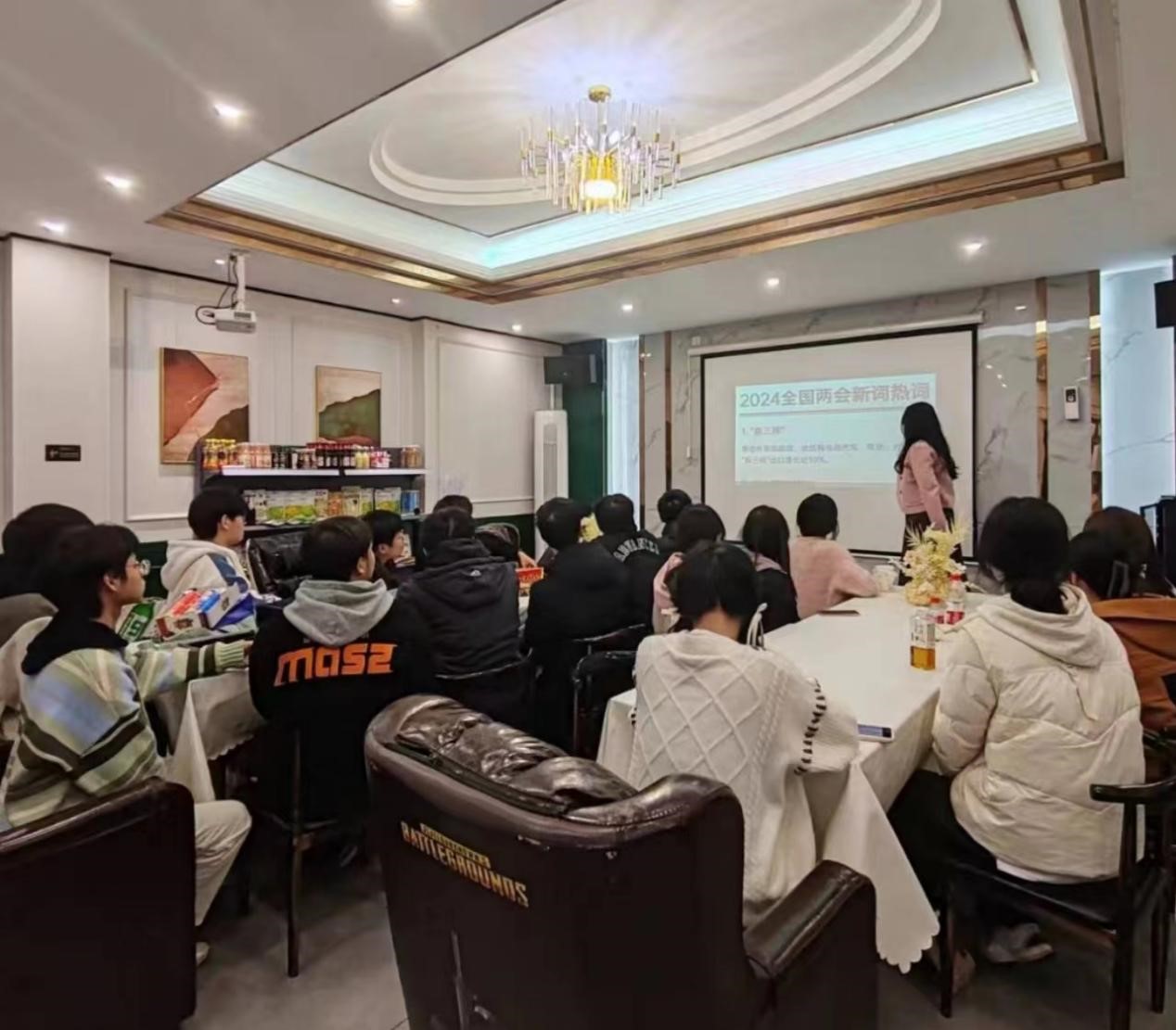 活动伊始,同学们集体观看了两会重要发言,了解两会的重要议题,学习两会精神。大家认真倾听并进行深入思考,就两会热点进行发言,表现出了极高的热情。