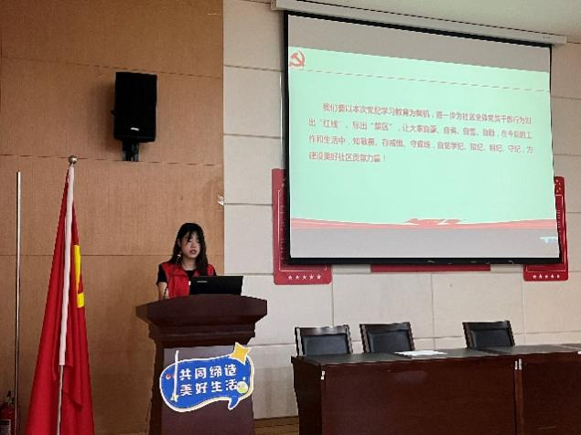 杨梦婕同志以“深入推进党纪学习,提升社区治理水平”为主题,强调了深入推进党纪学习,强化党员干部的纪律意识和规矩意识的重要性。通过系统化的学习,使党员们深刻理解党规党纪的精髓,内化为行动自觉,外化为服务群众的生动实践。