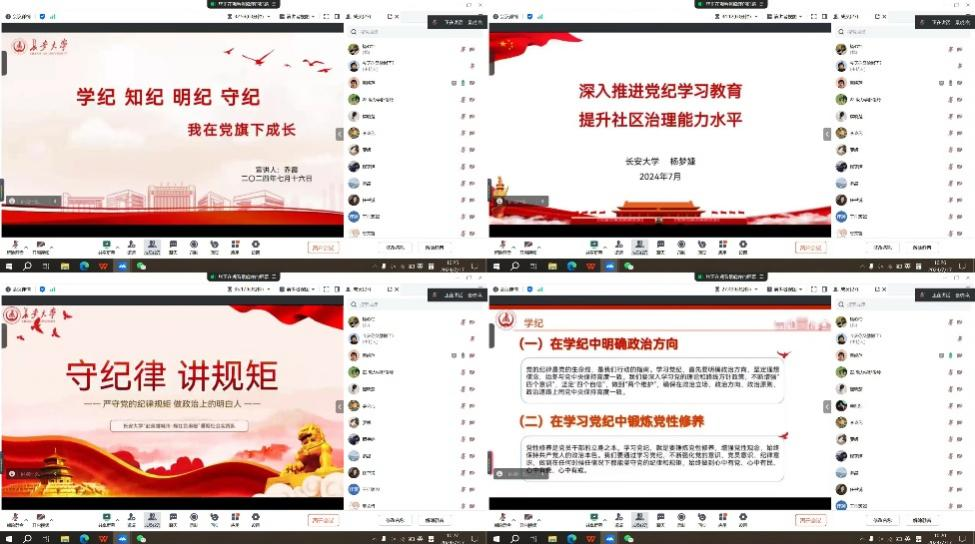 此外,本次宣讲活动充分依托多媒体优势,利用腾讯会议公司研究生党支部全体党员加入其中,实现了线上线下的同步进行。宣讲结束后,实践队成员与千家街社区党支部负责人围绕党纪学习和发挥党员先锋模范作用等方面开展经验交流,就党支部党建工作进行了深入探讨。