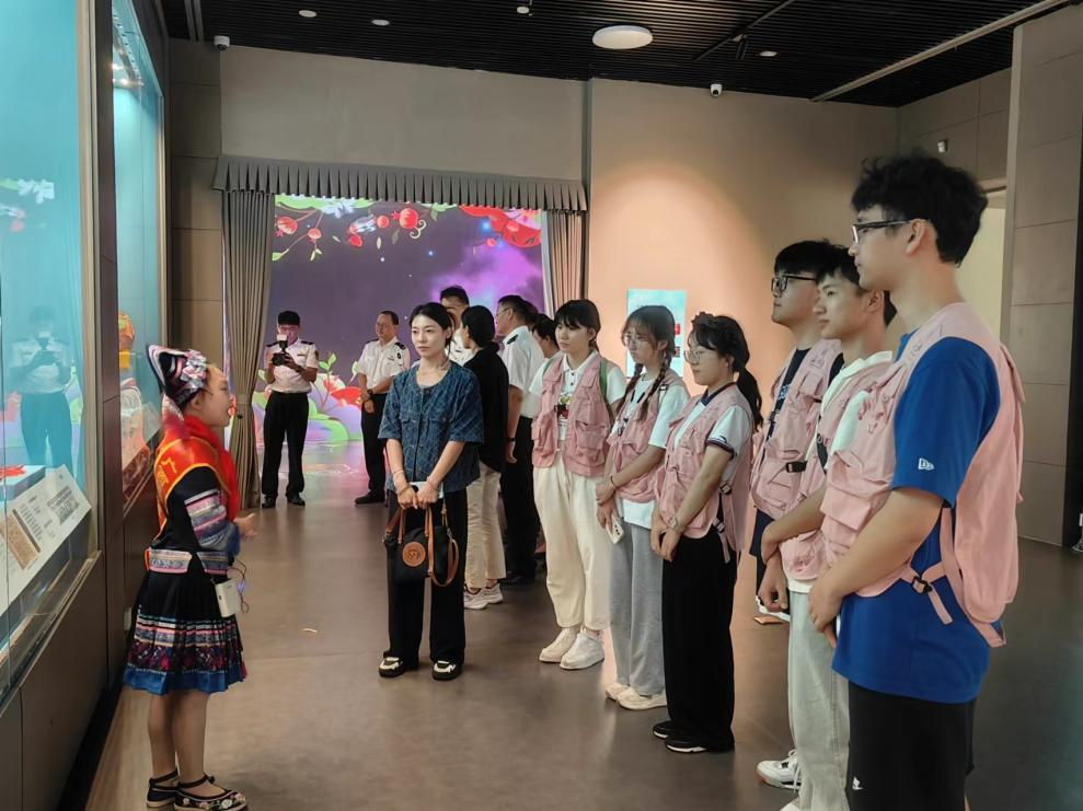 博物馆讲解人员分别从七个单元详细介绍了广西十二个民族的历史、民俗、服饰、建筑等特色。从壮族铜鼓、瑶族刺绣到苗族银饰……每一件展品都闪耀着独特的文化光芒,诉说着不同民族的历史故事。队员们品读铭刻在古代石碑上的历史诗篇,探寻依托在古老图腾中的文化智慧,感受根植于中华民族基因中的团结底蕴。