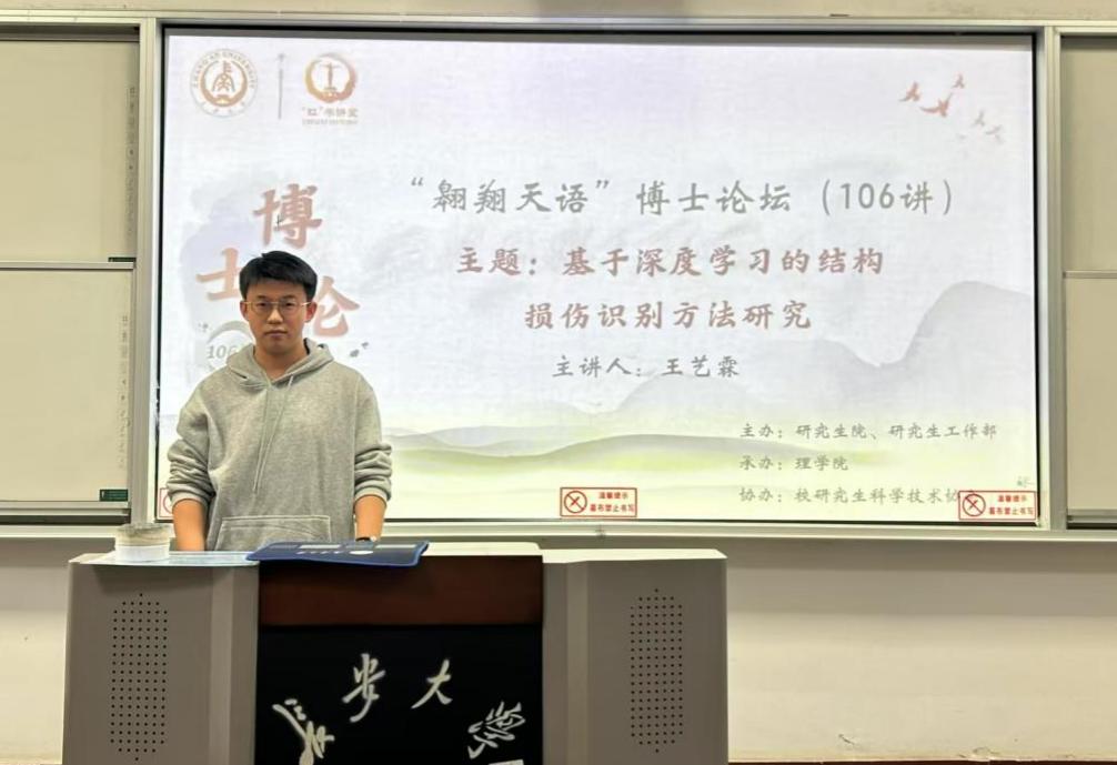 12月4日下午,由研究生院、研究生工作部主办,best365承办,校研究生科学技术协会协办的“翱翔天语”博士论坛第106讲在南校区北院103教室顺利举办。best365博士研究生王艺霖作了题为“基于深度学习的结构损伤识别方法研究”的报告,相关公司共30余名师生参加讲座。