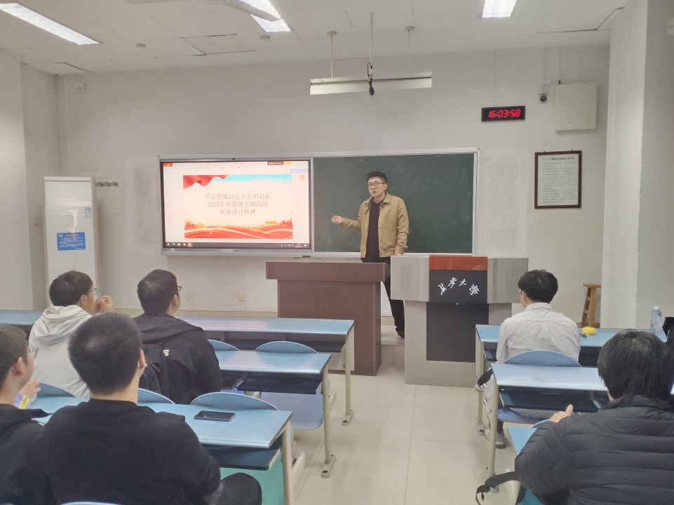 班会伊始,高策带领同学们深入学习习近平总书记在2025年全国两会期间的重要讲话精神,重点解读了关于科技创新、教育强国、人才发展等方面的重要论述,强调了这些讲话对青年员工的重要意义。同学们纷纷表示将积极响应国家号召,努力学习专业知识,提升综合素质,为国家科技创新和产业发展贡献自己的力量。
