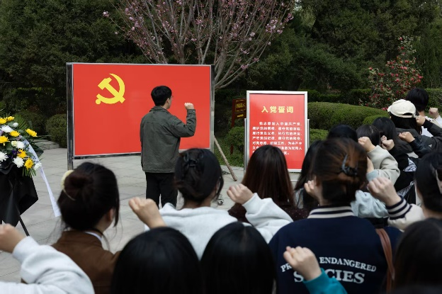 下午14时,全体党员列队抵达陵园。在巍然矗立的烈士纪念碑前,同志们庄严肃立,通过鞠躬默哀、敬献花篮等方式表达对革命先烈的无限追思。肃穆的仪式中,先烈们为民族独立、人民解放和国家富强英勇献身的光辉事迹浮现在党员心头,和平年代的来之不易更显珍贵。随后,在支部书记吴文哲的带领下,全体党员面向党旗重温入党誓词,铿锵誓言在陵园上空回荡,彰显新时代共产党员的使命担当。西安烈士陵园安息着七百余名为中国革命和建设事业牺牲的英烈。活动中,党员们还参观了陵园纪念馆,通过珍贵的历史图片和文物资料,系统学习了陕西地区革命斗争史,深刻体悟“红色政权是怎么来的、新中国是怎么来的、今天的幸福生活是怎么来的”。
