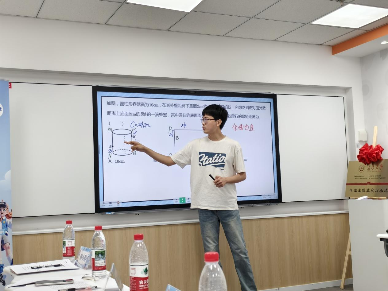 座谈过程中李岳员工分享了自己的成长及工作经历,同时也分享了不断学习、提升自我的经验,鼓励同学们珍惜学习时光,努力提升综合素质和能力。杜绍杰员工为在场的师生们展示了一堂精彩的示范课。讲课过程中,他将复杂的知识讲解得通俗易懂,充分调动了在场人员的学习积极性和主动性,现场气氛热烈融洽。通过这堂示范课,师生们对学而思的教学模式和教学效果有了更直观的了解,也对教育行业的发展有了更深刻的认识。