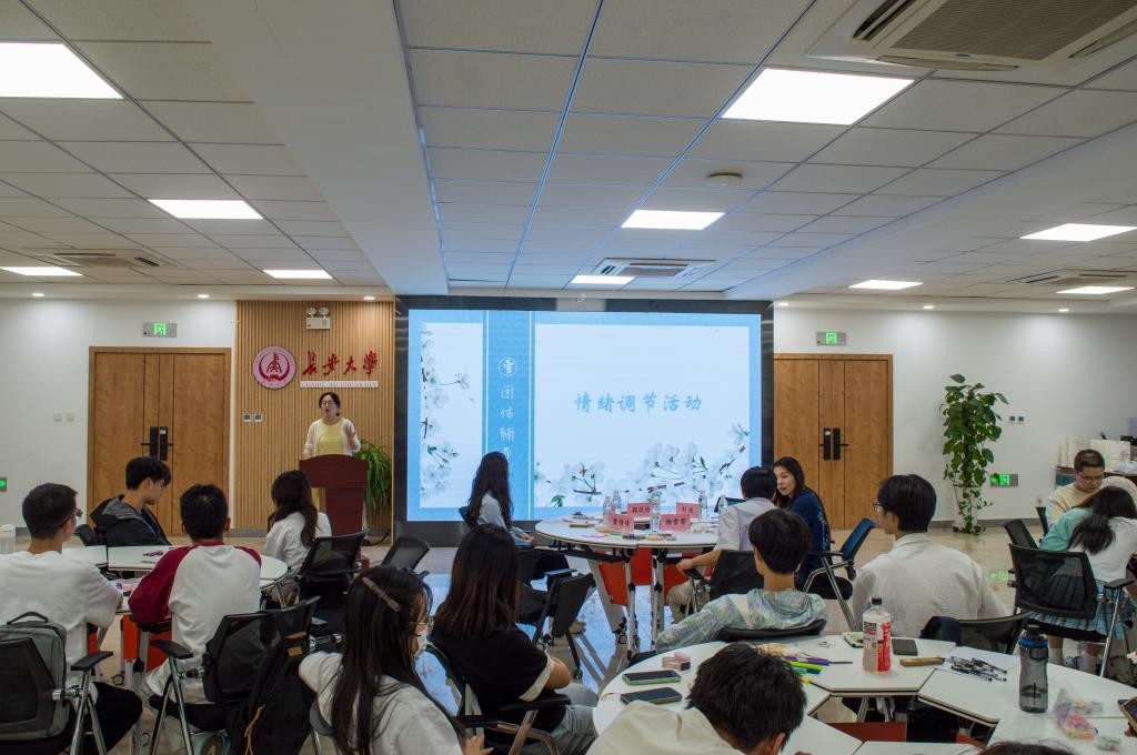 首先,霍倩倩组织同学们开展“情绪调节”团体辅导活动。通过互动游戏与分享,引导大家感受情绪、接纳情绪,并通过呼吸练习等方法调节压力。同学们在轻松的氛围中敞开心扉,初步掌握了情绪管理技巧,对串珠的心理疗愈作用作以铺垫。