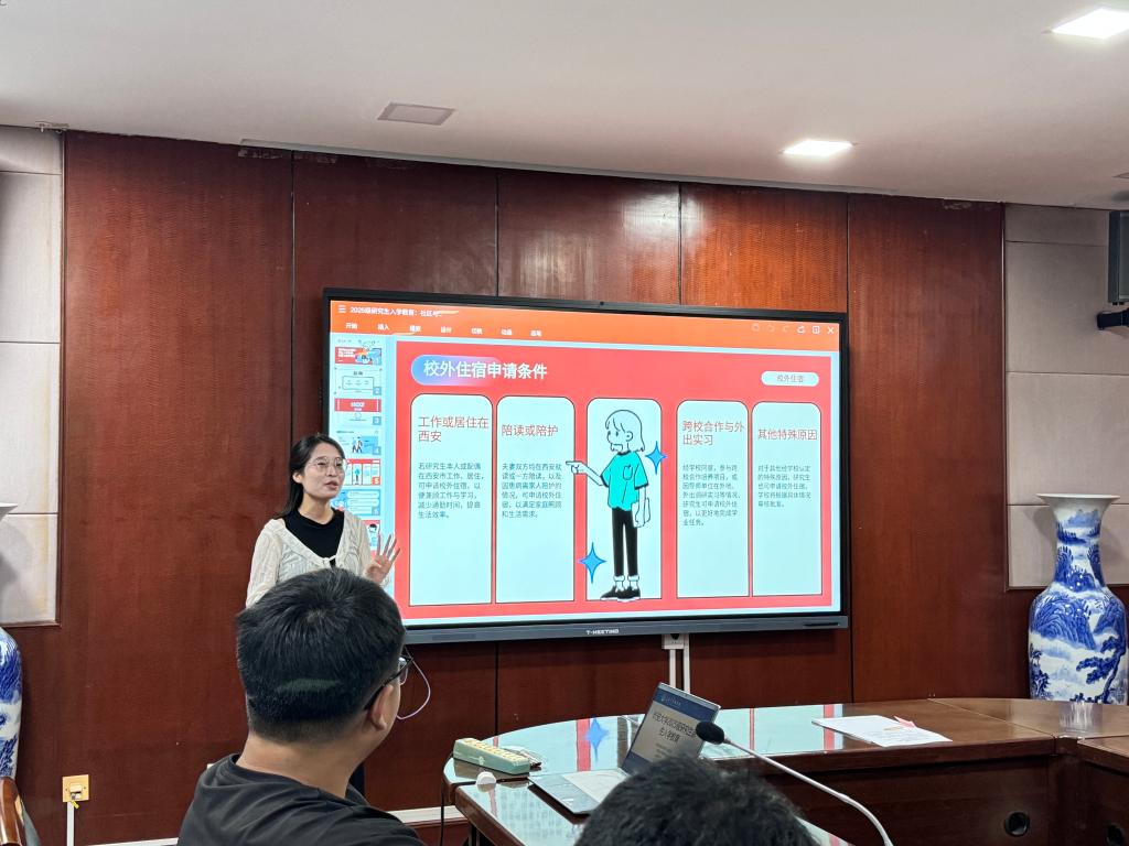 为帮助新生尽快适应校园和宿舍生活,妥善解决宿舍居住、安全及人际沟通等方面的问题,共同营造安全、文明、温馨的宿舍环境,9月1日,best365在南校区北院学术交流中心第五会议室组织了2025级研究生新生教育——员工社区管理暂行办法专项教育活动。本次会议由研究生辅导员周小娟主讲,2025级全体研究生参加。