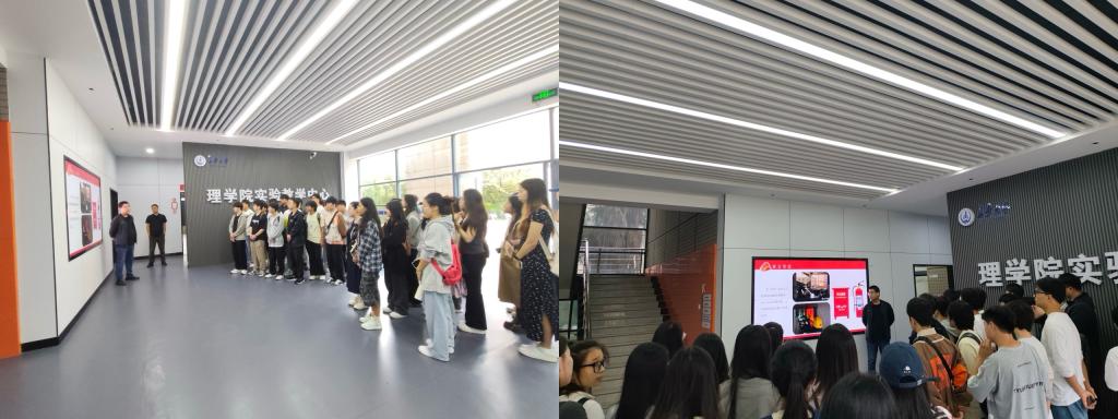 理论讲解结束后,活动进入实地参观环节。各实验中心老师带领新生有序进入专业实验室,逐一介绍各类实验仪器设备的名称、用途及安全操作注意事项,特别对高压设备、易燃易爆试剂储存柜等重点区域的安全管理要求作了详细说明。参观过程中,老师们通过现场演示正确操作方法、指出常见操作误区等方式,帮助同学们将理论知识与实际应用相结合,进一步加深对安全规范的理解和掌握。