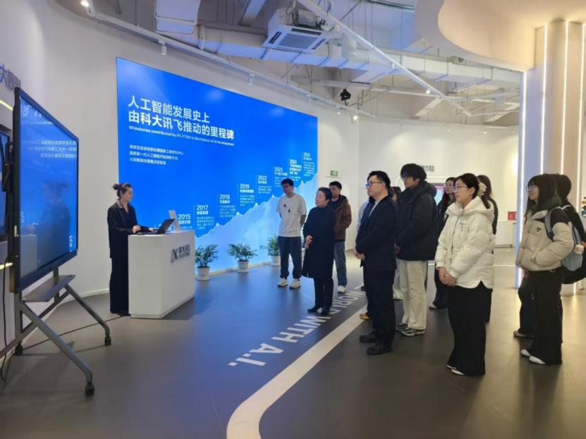 活动伊始,公司一行在工作人员引导下,走进科大讯飞AI展厅,沉浸式体验人工智能技术赋能千行百业的创新成果。从智能语音交互到自然语言处理,从智慧教育场景到智能办公解决方案,直观感受了科大讯飞在核心技术领域的突破与产业应用的落地成效,深刻认识到人工智能产业对复合型、创新型人才的迫切需求。