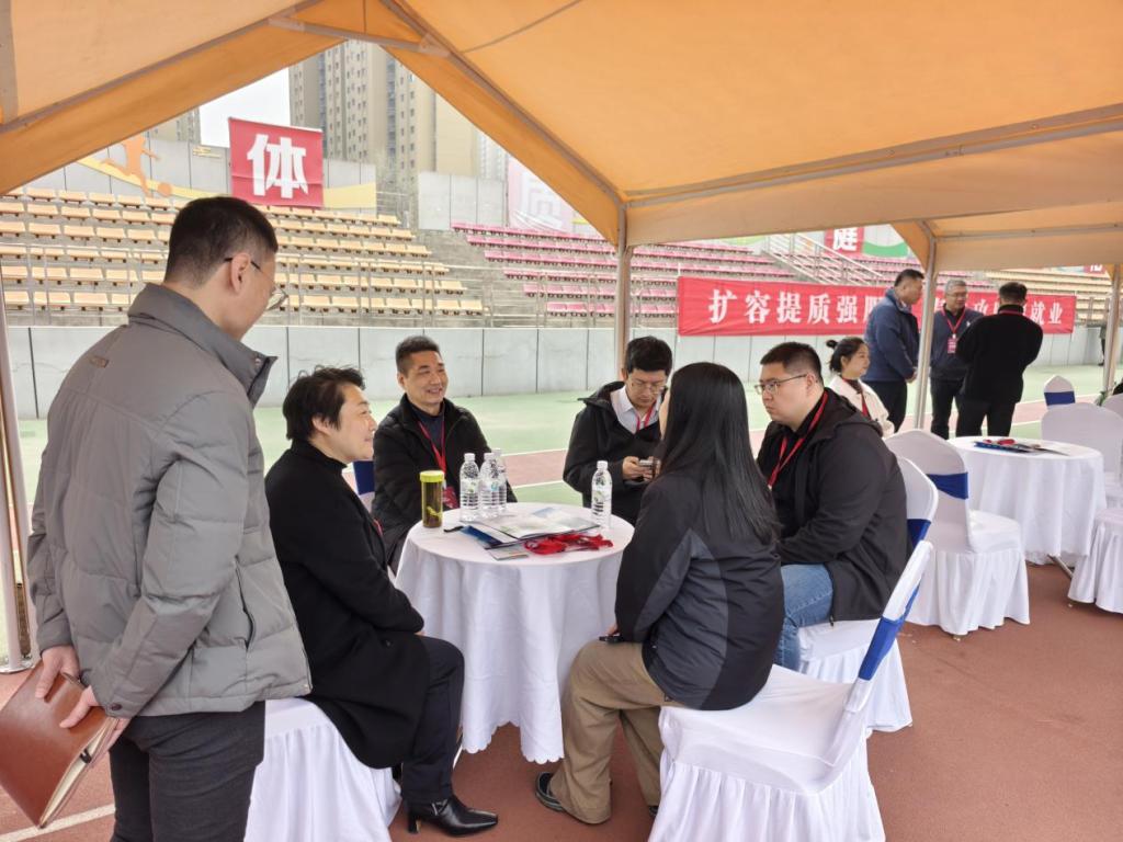 陈志坚书记、李树涛董事长等多位校领导莅临公司洽谈区了解公司毕业生就业推进情况、专业匹配岗位分布等内容,对公司春季就业工作开展给予指导意见。公司领导及教师在“访企拓岗”专区与参会企业招聘负责人面对面深入交流,先后与多家优质用人单位就岗位需求、专业适配、人才培养、校企合作等方面展开沟通,详细了解企业在人才招聘中的具体标准和发展需求,为公司毕业生积极推介优质岗位资源,进一步深化校企就业合作对接。
